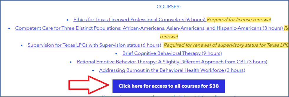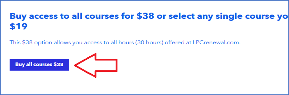 1) Go to LPCrenewal.com and on the home page (first page you come to) select the button below if you want the $38 offer or any single course if you just want one course: