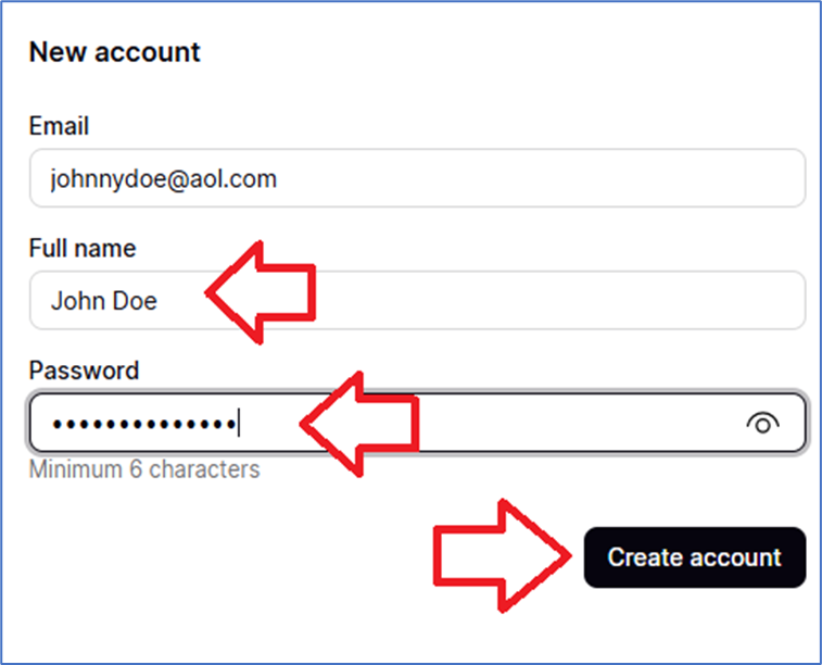 4) Put in your Full Name as you want it on your certificate and create a password, then select “Create account”: